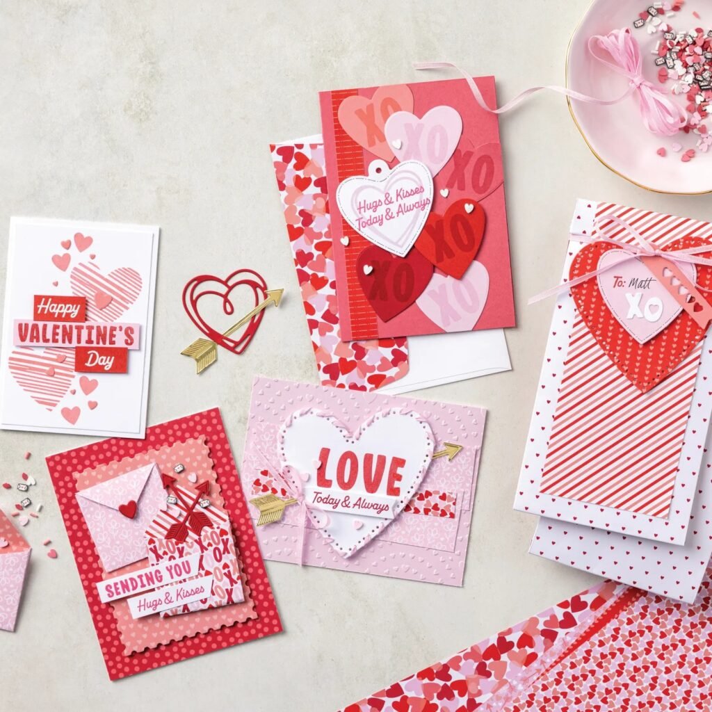 Join me for some fun and socializing while you make 4 cards using the lovely Made with Love suite.