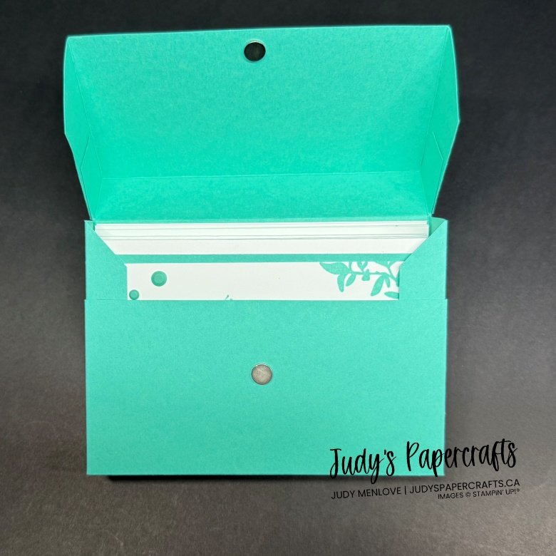 I stamped the envelope on both sides in Summer Splash with the small leaf branch.