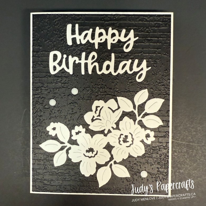 Earlier, I had made this quick and simple card using Basic White, added a layer of Basic Black that was embossed with the Exposed Brick embossing folder. Added the largest stand alone (no stamp for this) die cut in Basic White and I die cut the sentiment in Basic White from the retired Wanted To Say dies.